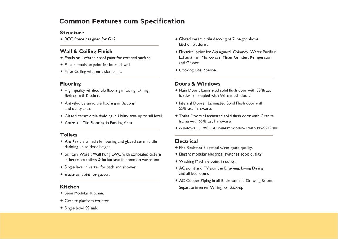 Internal Doors: Laminated solid flush doors with SS/Brass hardware.